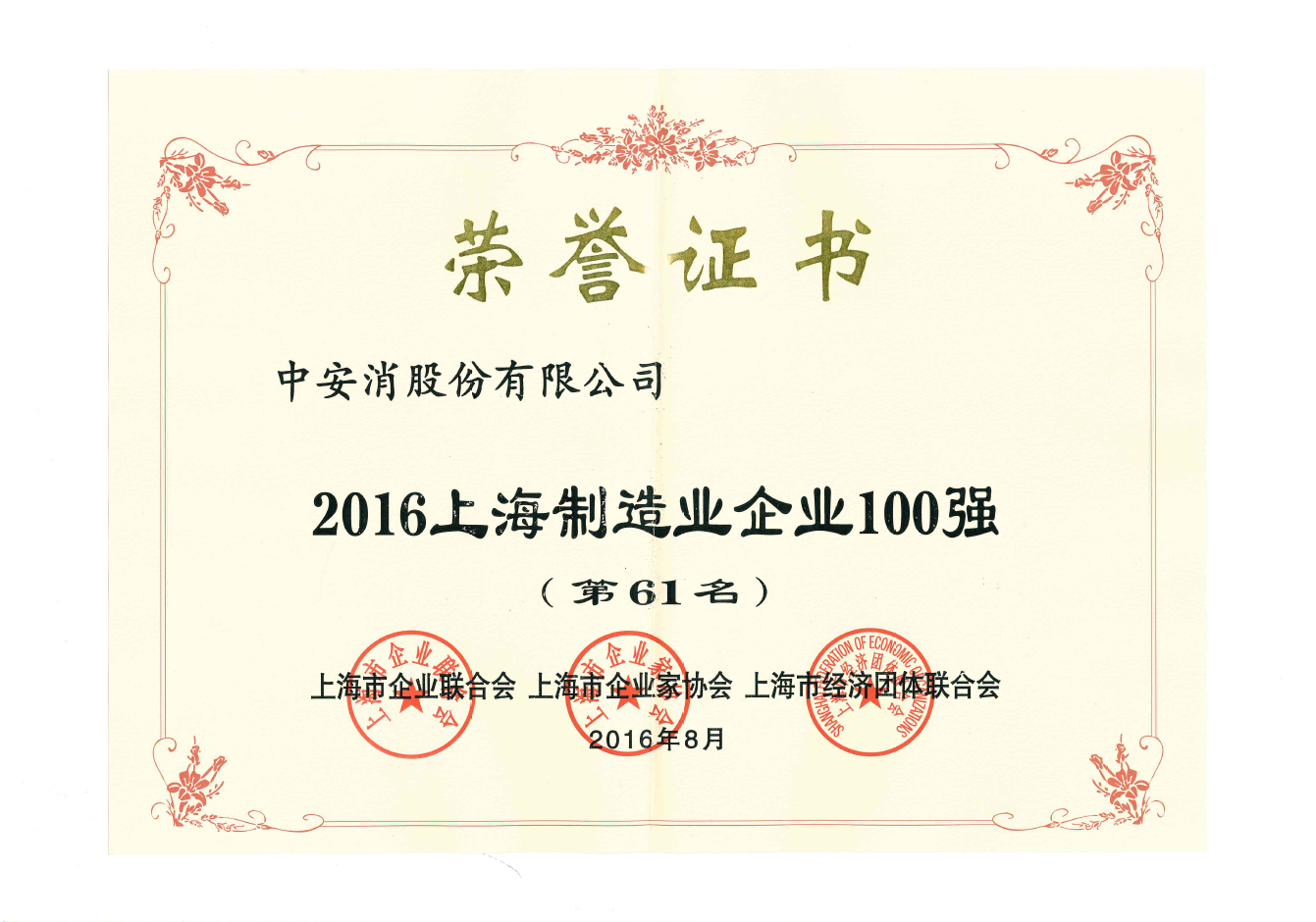Recently, 2016 Shanghai Top 100 Enterprises List was officially released. China Security & Fire Co., Ltd (hereafter referred to as CSF) was listed into lists of 2016 Shanghai Top 100 Private Enterprises and Top 100 Manufacturing Enterprises. Leaders such as deputy mayor of Shanghai, Zhou Bo, and deputy head of Development and Reform Commission of Shanghai, Ge Dawei were present and granted awards to winners.