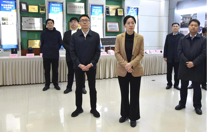 General Manager Jing Yuping expressed a warm welcome to Mayor Sheng Lei and his entourage for visiting Mingking, thanked Changzhou Municipal Government for the trust and support they have been giving to Mingking, and introduced the development history of the company, the practical application of AI artificial intelligence algorithms in the Digital Intelligence Twinning platform software, online monitoring of electric power transmission lines, the electric power safety supervision industry and the energy industry.