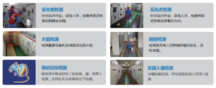 在智慧安監領域,我們已實現了多項智能分析功能,包括但不限于絆線檢測、周界監控、人臉檢測與識別、安全帽佩戴檢測及顏色識別、車輛與車牌信息的高精度識別,以及針對抽煙、打電話、制服穿著、馬甲穿戴等四類特定目標的智能檢測與識別等等。利用AI與大數據分析技術,對安全生產過程中的安全風險進行智能識別與預警,提升安全監管的精準度與效率,保障電力生產的安全穩定。