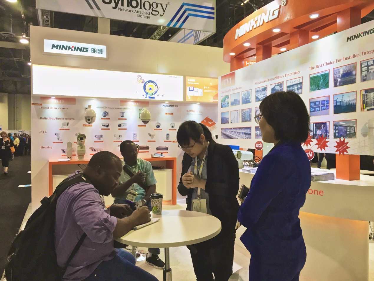 開展期間,參展客商絡繹不絕,豪恩、明景的云臺、球機、半球、槍機、遠距離的重型云臺等設備,引起了許多客商的濃厚興趣,并同在場工作人員進行了深入的交流,值得一提的是便攜式云臺及國際最新的TVI方案受到了多方關注,客戶給予了高度評價,為后續的深入合作帶來無限可能。