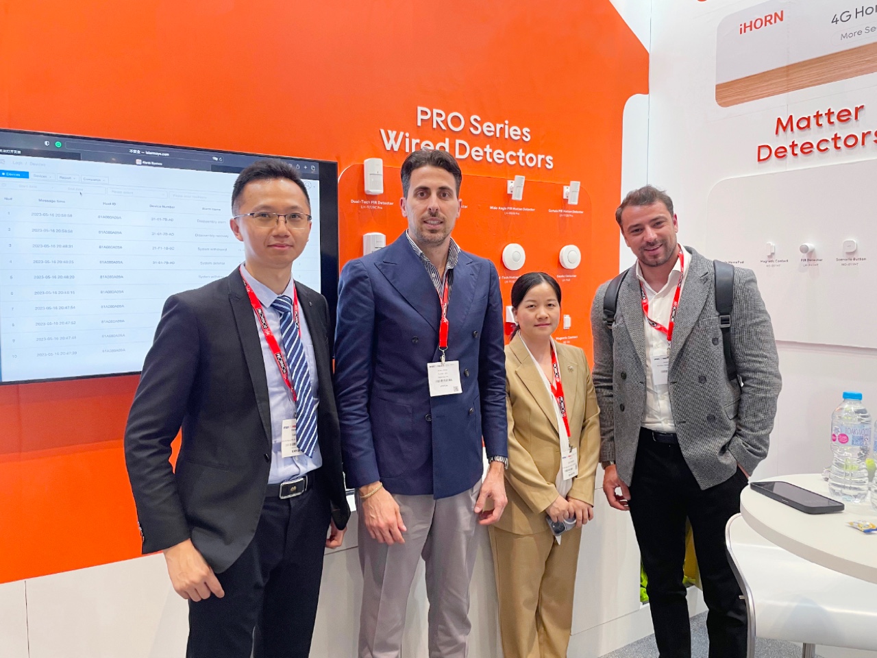 中安科子公司iHORN豪恩驚艷亮相S3-S6 No.IF3837展位,向全球重點展示了iHORN豪恩LHD8100家庭安全系統、Pro系列有線探測器、Matter系列探測器、Zigbee系列探測器、NB-IoT/Cat 1系列探測器等五大安防系列產品,備受客戶青睞,成為現場關注焦點。