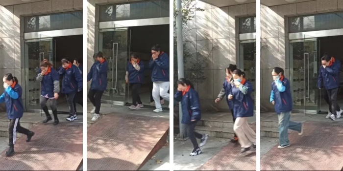 本次應(yīng)急演練模擬辦公樓內(nèi)突發(fā)火情的場(chǎng)景,“起火”后,樓內(nèi)員工按照安全出口標(biāo)志指引,俯身掩鼻快速有序地撤離到安全地帶。