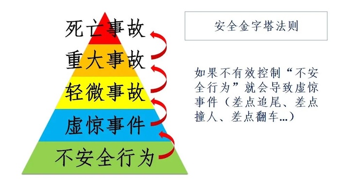 要預防死亡事故,必須預防重大事故;預防重大事故,必須預防輕微事故;預防輕微事故,必須消除日常駕車的不安全行為。