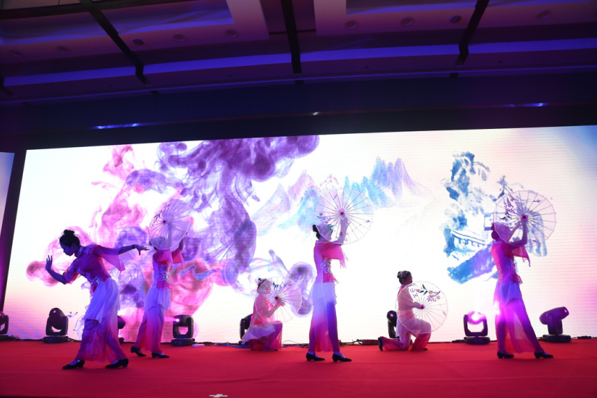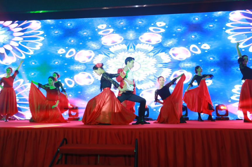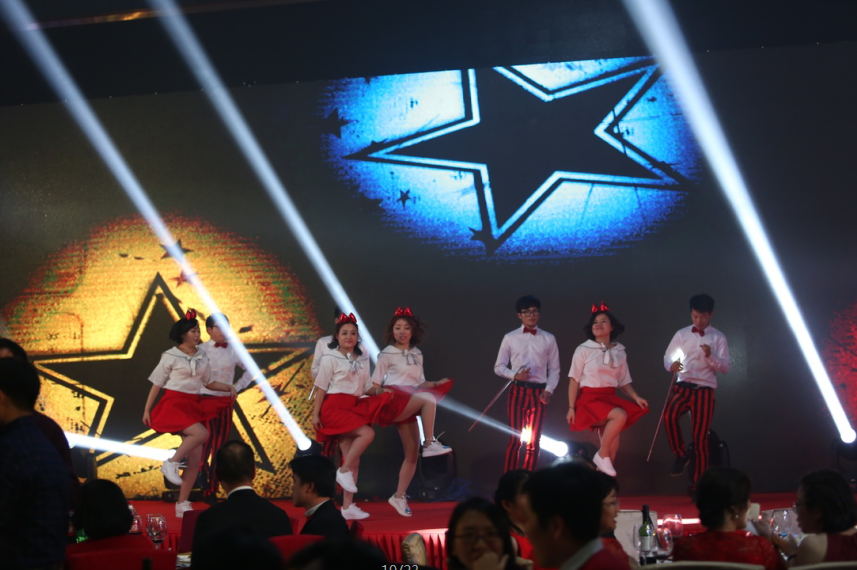 在中安科股份本部的一曲激烈昂揚(yáng)的《斗牛舞》中,晚宴拉開帷幕。8名女郎舞姿干凈利落、紅色裙裾翻飛,男伴氣宇宣揚(yáng),體現(xiàn)了西班牙斗牛士勇往直前的氣概;中安消投資公司的相聲《做啥都要?jiǎng)?chuàng)新》,一逗一捧相得益彰、笑料百出;衛(wèi)安集團(tuán)的《月亮代表我的心》吉他彈唱浪漫滿場(chǎng);中科智能的創(chuàng)意朗誦《中科星愿》,在黑暗中用星星點(diǎn)點(diǎn)的光斑演繹了動(dòng)人的企業(yè)歷程;華和萬(wàn)潤(rùn)的《江南舞:煙花三月》舞姿曼妙婀娜,盡顯江南水鄉(xiāng)的詩(shī)意柔情;中安消技術(shù)的歌曲串燒《中安消大家庭》溫情而暖心;上海擎天由兩位才華洋溢的員工家屬小朋友帶來(lái)了歡快的尤克里里樂器演奏;常州明景的舞蹈《Darling》俏皮輕快、時(shí)尚動(dòng)感;主持人的《燕尾蝶》獨(dú)唱優(yōu)美動(dòng)聽、爆發(fā)力十足;最后登臺(tái)的《貓步輕俏》,舞者從臺(tái)上舞動(dòng)到臺(tái)下,嗨翻全場(chǎng)。晚會(huì)上還穿插進(jìn)行了豐富有趣的游戲互動(dòng),笑聲不斷、驚喜連連。