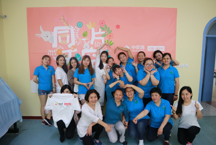 中安科“公益·益起來(lái)”團(tuán)隊(duì)志愿者與上海星雨兒童康健院的老師們合影