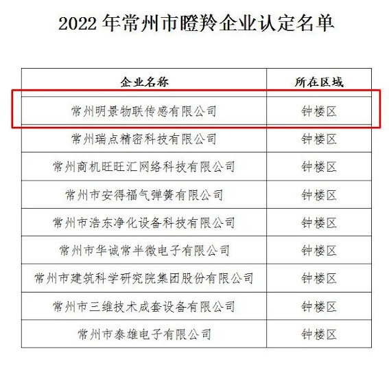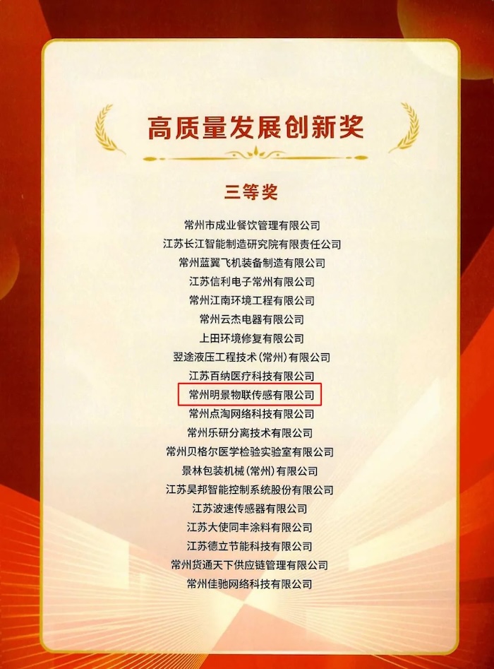 中安科子公司常州明景物聯傳感有限公司榜上有名,榮獲“2023年度高質量發展創新獎”榮譽稱號。