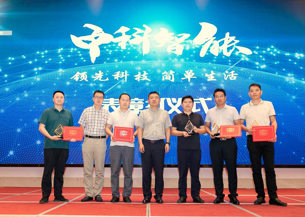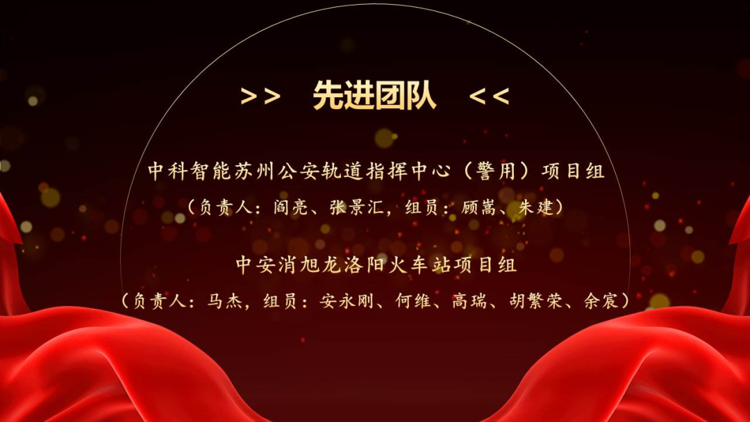 表彰大會(huì)上,由中安科股份公司副總裁兼江蘇中科智能總經(jīng)理查磊先生為項(xiàng)目組成員、劉松峰、王永亮、朱浩頒發(fā)了獎(jiǎng)杯、榮譽(yù)證書及感謝信。