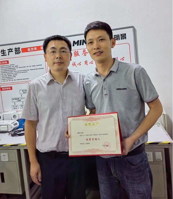 “優(yōu)秀管理人”——朱傳飛,生產(chǎn)部經(jīng)理兼售后服務(wù)經(jīng)理,作為生產(chǎn)管理第一責(zé)任人,2021年通過帶領(lǐng)技術(shù)骨干調(diào)整工序、優(yōu)化工藝流程(攻關(guān)改進(jìn)92項(xiàng))等,極大的提高了產(chǎn)能,與上一年相比,入庫(kù)產(chǎn)量提升18.7%、入庫(kù)產(chǎn)值提升36%;帶領(lǐng)團(tuán)隊(duì)的售后團(tuán)隊(duì)年度維修及時(shí)率96%、維修總量2113件、維修質(zhì)量100%、零投訴、售后服務(wù)滿意度100%,并創(chuàng)造了二次銷售與盈利;作為生產(chǎn)安全第一責(zé)任人,定期組織宣導(dǎo)安全教育,做到全年生產(chǎn)財(cái)產(chǎn)、人身安全零事故。