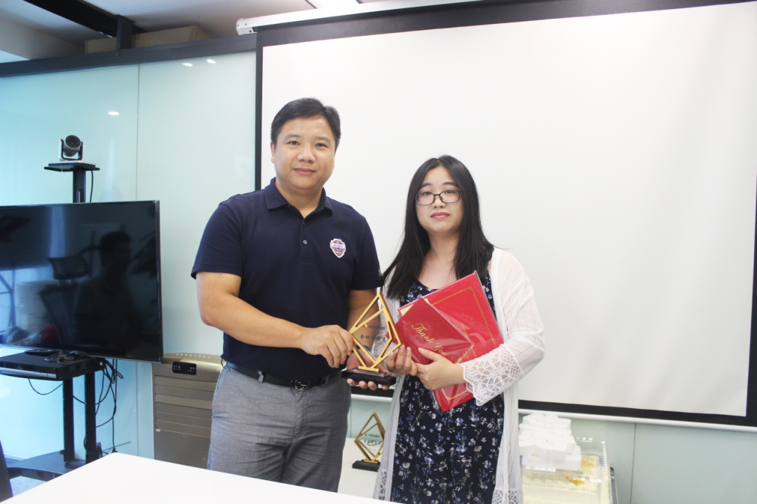 表彰大會(huì)上,由公司常務(wù)副總經(jīng)理趙倩女士為劉泉香、左有為頒發(fā)了獎(jiǎng)杯、榮譽(yù)證書及感謝信。
