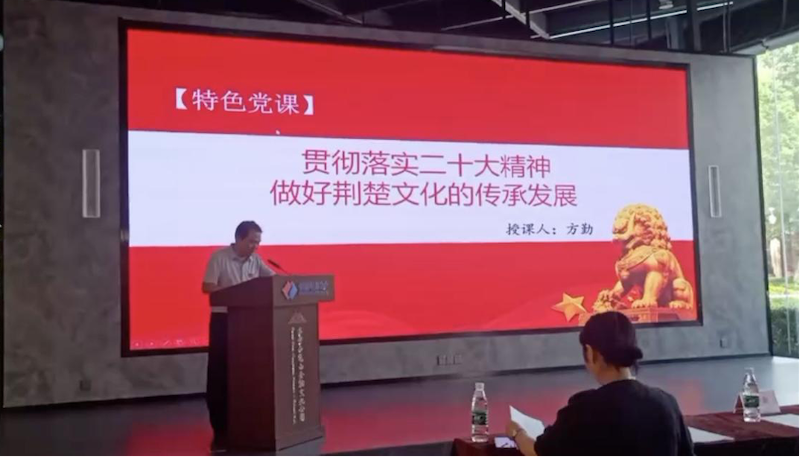 其次,湖北省文物考古研究院黨委書記、院長方勤為大家講授黨課《貫徹落實(shí)二十大精神 做好荊楚文化的傳承發(fā)展》。社區(qū)九旬老黨員、志愿軍周學(xué)頤更是來到現(xiàn)場,親身為大家講述其在抗美援朝戰(zhàn)爭上九死一生的經(jīng)歷,激勵(lì)大家熱愛祖國、感恩生活。
