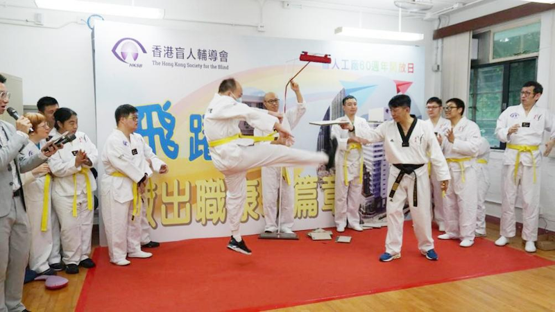 衛安的運營經理Jacky Leung為輔導會的孩子們進行跆拳道培訓,并于60周年開放日的開幕儀式上進行現場表演。開幕儀式結束后,衛安員工前往輔導會的工場參觀,現場觀看了紙盒、航班用耳筒、手提袋等物品制作,深入了解該機構會員的工作。