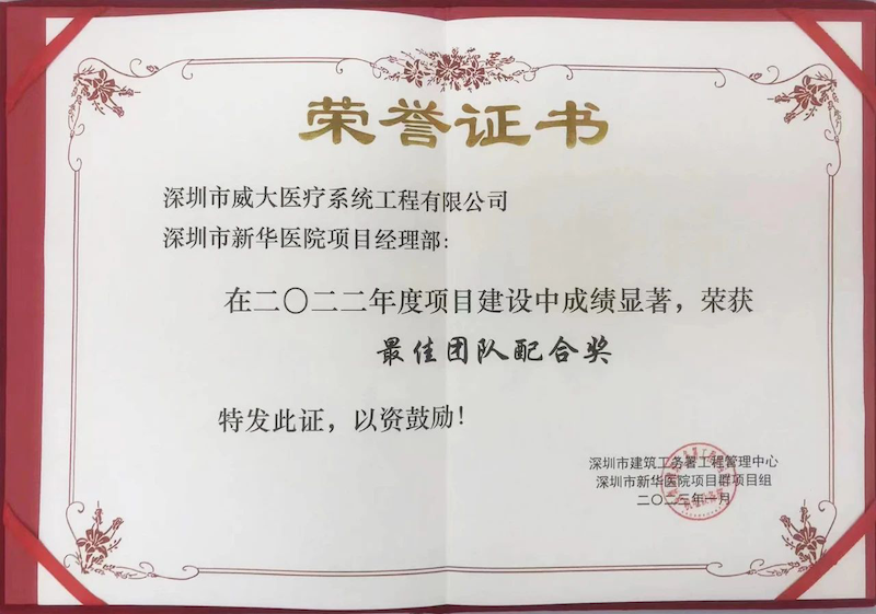 2023年1月13日,深圳市建筑工務署工程管理中心、深圳市新華醫(yī)院項目群項目組聯(lián)合召開了“2022年度新華醫(yī)院I標項目群年終總結暨優(yōu)秀表彰大會”。在這場大會上,深圳威大憑借其精細化管理體系和真抓實干的工作態(tài)度,榮獲了“最佳團隊配合獎”、“優(yōu)秀管理干部”等榮譽。這些榮譽的獲得,不僅是對深圳威大在新華醫(yī)院項目中杰出表現(xiàn)的認可,更是對其在智慧醫(yī)療領域專業(yè)實力的肯定。